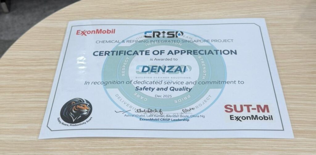 シンガポールのDENZAI International Holdingsは、クライアント Técnicas Reunidas社の代理として、Chemical & Refining Integrated Singapore Plant(CRISP)プロジェクトにおける業務において、安全および品質への献身的な取り組みが評価され、表彰されました。
